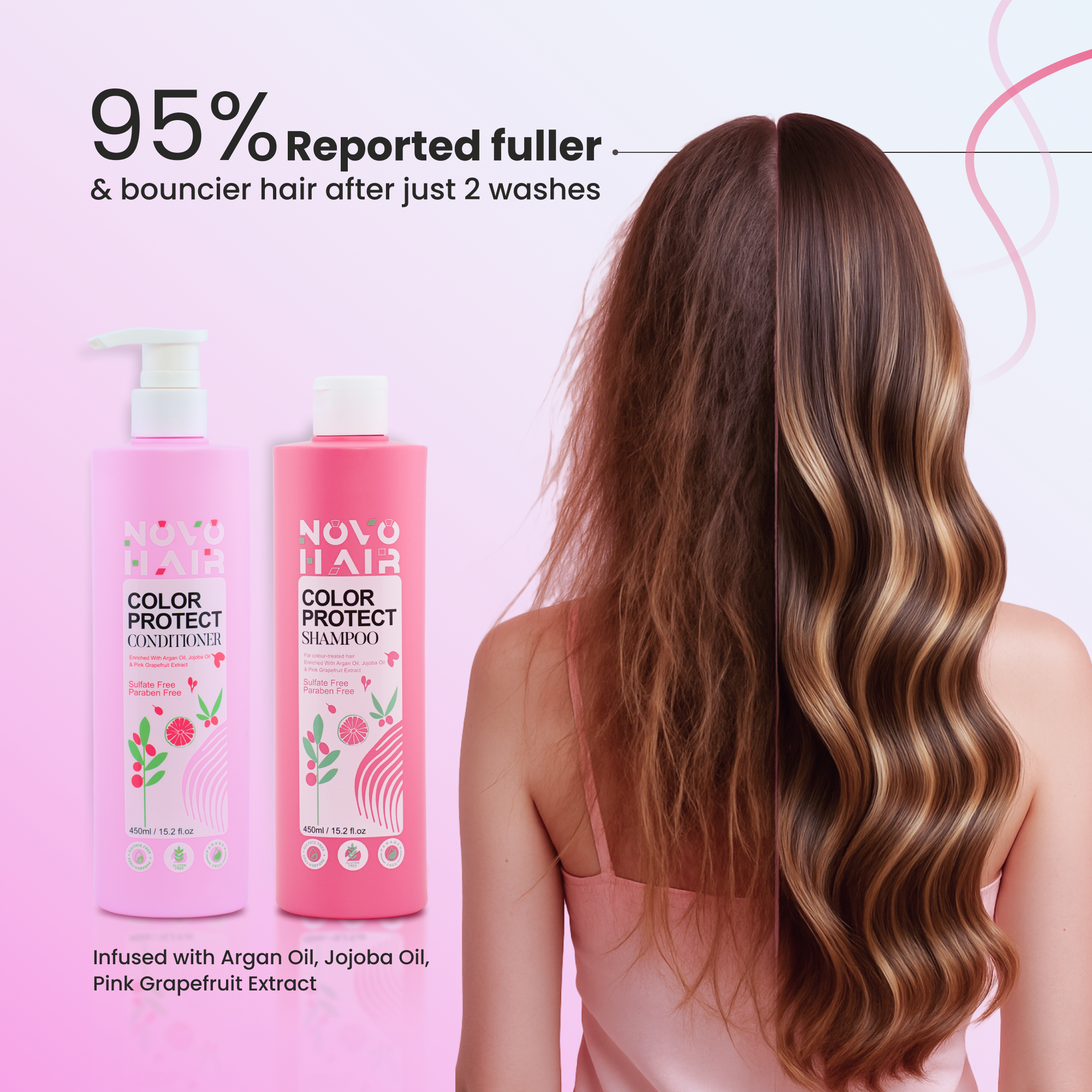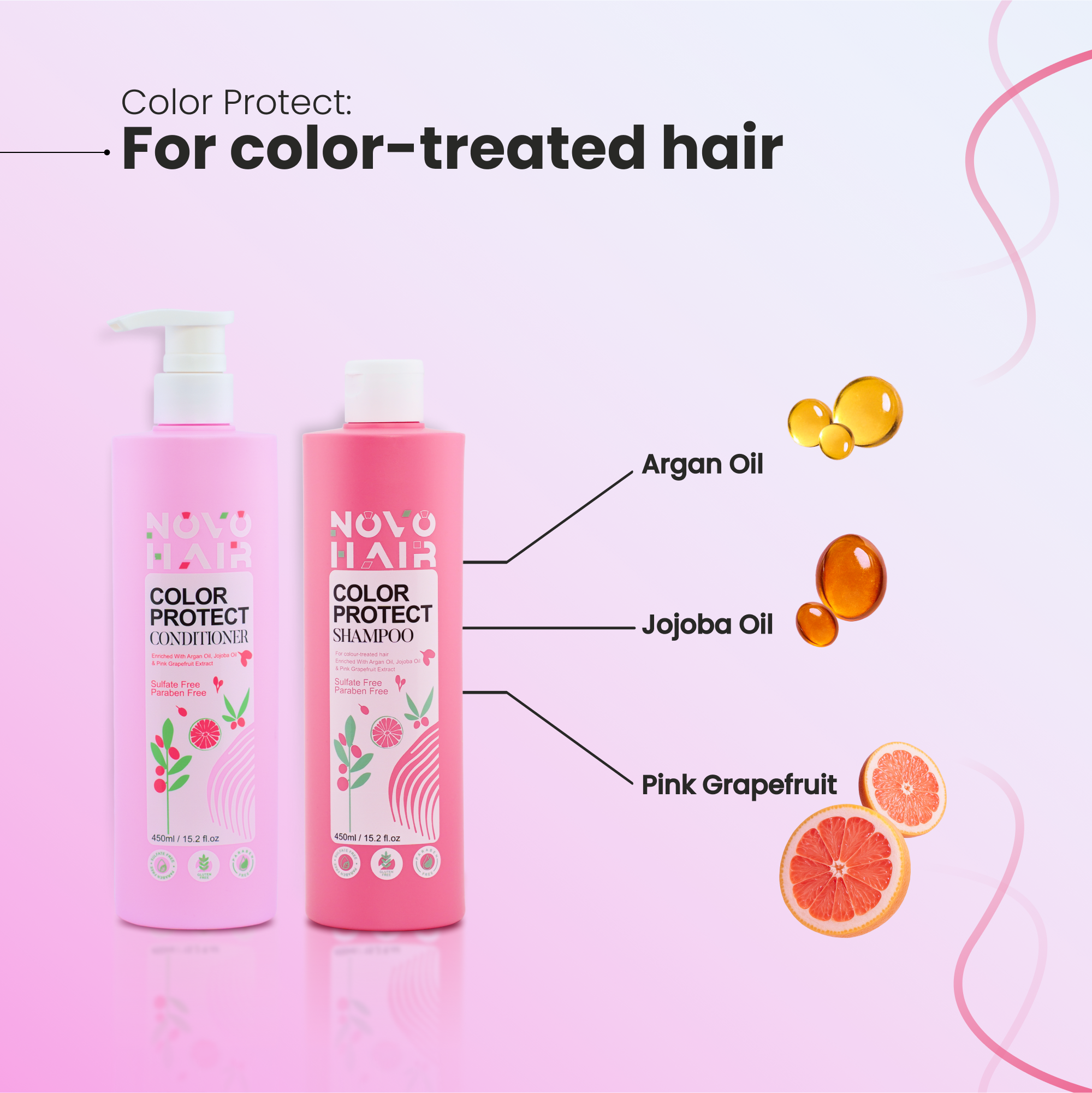 Helps lock in color while keeping hair soft smooth and manageable. Infused with Argan Oil Jojoba Oil and Grapefruit Extract to enhance radiance and maintain color vibrancy. Detangles and softens treated hair. Free from sulfates parabens and gluten. 450ml.